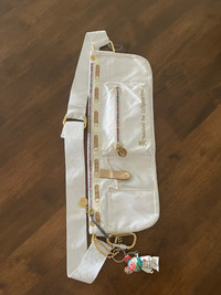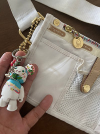 Item: tokidoki x Lesportsac fanny waist bag Manual measurement on flat garment: ->15 inches x 5.5inches Can fit 34 inches waist below Color: white with gold buckle and rainbow zipper Condition: overall condition very good(have sign of wear just a storage dirt (too minimal) and it still new look like Complete with Qee Keychain and medicom bearbrick Shipoing worldwide