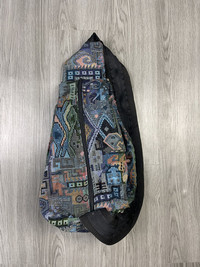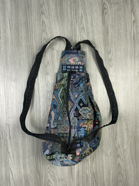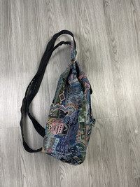 Size about medium Manual on photo in inches One major compartment and one front pocket Cotton Zipper strap. Can be bagpack Shipping worldwide All sale are final