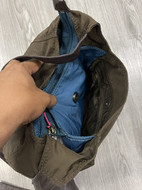 Size about medium Measurement on photo in inches Overall condition good Have ink spot inside on pocket Adjustable strap Nylon Multipocket Shipping worldwide All sale are final