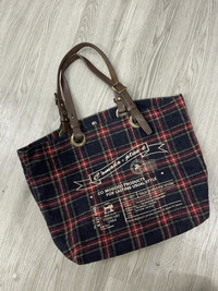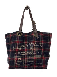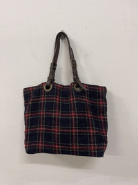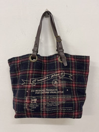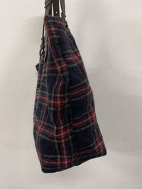 Vintage - C’omodo +plus t japan wool plaid leather handle strap tote