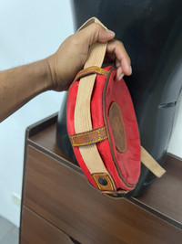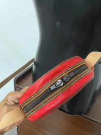 Size on photo in inches One step side button adjustable strap Nylon and leather Made in italy Good condition Have some cracking on leather lining on the zip Not affected Other condition very good Shipping worldwide All sale are final