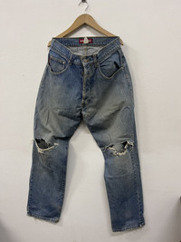 Size on tag 34r Fit 33 Manual on photo in inches Have distress,reconstruct and sign of use Shipping worldwide All sale are final
