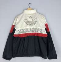 Vintage Adidas Trefoil Biglogo Zipper Jacket Adidas Winbreaker Raincoat Colorblock Adidas Casual Fashion Style Bomber Large Size Tag Size : Size L (refer measurement) Width (armpit to armpit) : 22" inches Length (shoulder to end of garment) : 26" inches Shoulder : 26" inches Sleeve Lenght : 20" inches Weight : 250g Material : nylon (All measurements were taken lying flat) An item that has been used or worn previously. See our listing for full details and description of any imperfections. Please don't expect it to be like new or in pristine condition GOOD VINTAGE CONDITION ( USED CLOTHING ). NO HOLES AND STAINS. SHIPPING • Shipping by DHL EXPRESS with tracking number and signature. Really fast and safe! • DHL Express – Receiving the item within 3-5 days ONLY depend on your location. PLEASE DROP OFF YOUR PHONE NUMBER FOR SHIPPING PURPOSES THIS IS MANDATORY FOR DHL EXPRESS SHIPPING Thanks for visiting our shop. REF : P239