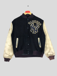 RARE!! New York Yankees Varsity Jacket by ChalkLine Tag Tag Size : Size XL (refer measurement) Width (armpit to armpit) :23.5 " inches Length (shoulder to end of garment) : 25" inches Shoulder : 19" inches Sleeve Lenght : 63" inches Weight : 950g Material : polyester (All measurements were taken lying flat) An item that has been used or worn previously. See our listing for full details and description of any imperfections. Please don't expect it to be like new or in pristine condition GOOD VINTAGE CONDITION ( USED CLOTHING ). NO HOLES AND STAINS. SHIPPING • Shipping by DHL EXPRESS with tracking number and signature. Really fast and safe! • DHL Express – Receiving the item within 3-5 days ONLY depend on your location. PLEASE DROP OFF YOUR PHONE NUMBER FOR SHIPPING PURPOSES THIS IS MANDATORY FOR DHL EXPRESS SHIPPING Thanks for visiting our shop. REF : P711