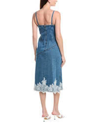 - Color/pattern: blue - Approximately 47in from shoulder to hem - Model is 5'10.5 and is wearing a size 4. Measurements may vary slightly by size. - Design details: V-neck, lace embellishments, and side slits - Center back zip - 100% cotton - Lining: 80% polyester, 20% cotton - Lace: 100% nylon - Dry clean only - Imported