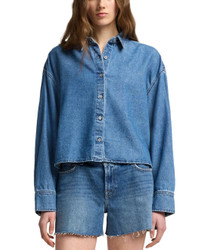 - About the brand: A denim icon. - Nina Oversized Cropped Shirt in Hilo - Approximately 16in from shoulder to hem - Measurements taken from a size S and may vary slightly by size. - Button front - Lyocell 32% , Cotton 68% - Machine wash - Imported