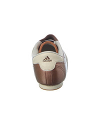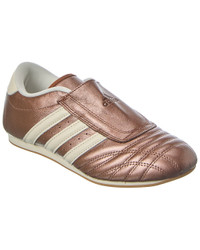 - About the brand: Innovative athletic wear for every sport. - Taekwondo Leather Sneaker in pre-loved brown/white leather with logo accents - Elasticized slip-on style - Lightly padded insole - Rubber sole with traction - Imported