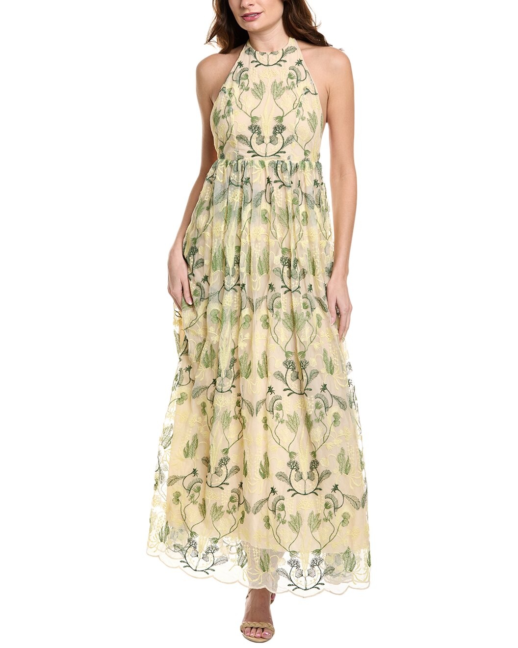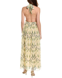 - Color/pattern: acanella - Approximately 63in from shoulder to hem - Model is 5'10 and is wearing a size small. Measurements may vary slightly by size. - Design details: embroidered mesh fabrication, self-tie halter neck and elastic waist - Self-tie closure - 100% nylon - Lining: 90% polyamide, 10% elastane - Hand wash - Imported