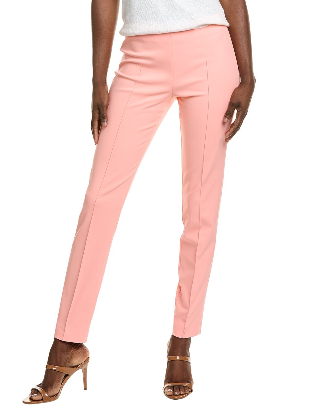 - Color/pattern: bellini - Inseam approximately 30in; 10in rise - Model is 5'10 and is wearing a size 4. Measurements may vary slightly by size. - Design details: pleated front, and elastic waist - Left side zip - 51% cotton, 42% nylon, 7% elastane - Dry clean only - Imported