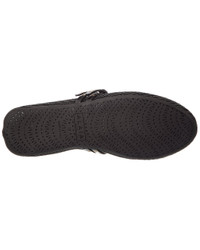 Leather-trimmed raffia ballet flats Black