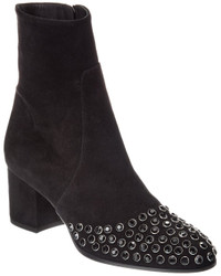 - About the brand: The epitome of elegance in women's wear. - Please note: Size selections are European. For US conversions, please reference size chart. - Made in Italy - Color/material: black suede - Design details: silver-tone hardware, embellished toe - Inner side zip-up closure - Lightly padded leather insole - Smooth leather sole - 2.5in heel - 6.5in shaft - 10in boot circumference - Please note: All measurements are approximate and were taken from a size 37; slight variations may occur. - The Boot Size Guide