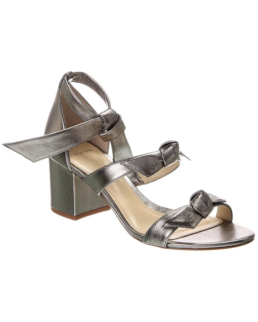 - About the brand: Simple, feminine, & flirty. - Please note: Size selections are European. For US conversions, please reference size chart. - New Lolita 60 Leather Sandal in silver leather with knot accents - Self-tie ankle wrap closure - Lightly padded leather insole - Smooth leather sole - 2.5in heel - Please note: All measurements are approximate and were taken from a size 37; slight variations may occur. - Our products are 100% genuine. In some cases we purchase merchandise from trusted independent suppliers and not directly from the brand owner. In all cases we stand by the authenticity of every product sold on our site.