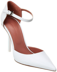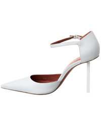 - About the brand: A fresh, feminine influencer favorite. - Please note: Size selections are European. For US conversions, please reference size chart. - Made in Italy - Angelica Leather Pump in white leather and gold-tone hardware with pointy-toe - Adjustable ankle strap with buckle closure - Lightly padded leather insole - Smooth leather sole - 4in heel - Please note: All measurements are approximate and were taken from a size 36; slight variations may occur. - Our products are 100% genuine. In some cases we purchase merchandise from trusted independent suppliers and not directly from the brand owner. In all cases we stand by the authenticity of every product sold on our site.