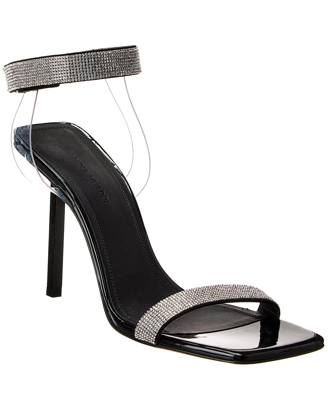 - About the brand: A fresh, feminine influencer favorite. - Please note: Size selections are European. For US conversions, please reference size chart. - Made in Italy - Rih Vinyl & Patent Sandal in black patent leather and transparent vinyl with crystal embellishments and pin heel - Adjustable strap with Velcro® closure - Lightly padded leather insole - Smooth leather sole - 3.75in heel - Please note: All measurements are approximate and were taken from a size 37; slight variations may occur. - Our products are 100% genuine. In some cases we purchase merchandise from trusted independent suppliers and not directly from the brand owner. In all cases we stand by the authenticity of every product sold on our site. - WARNING: - CA Residents - Prop 65