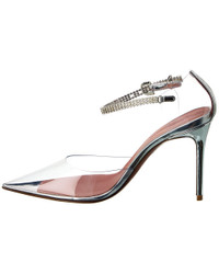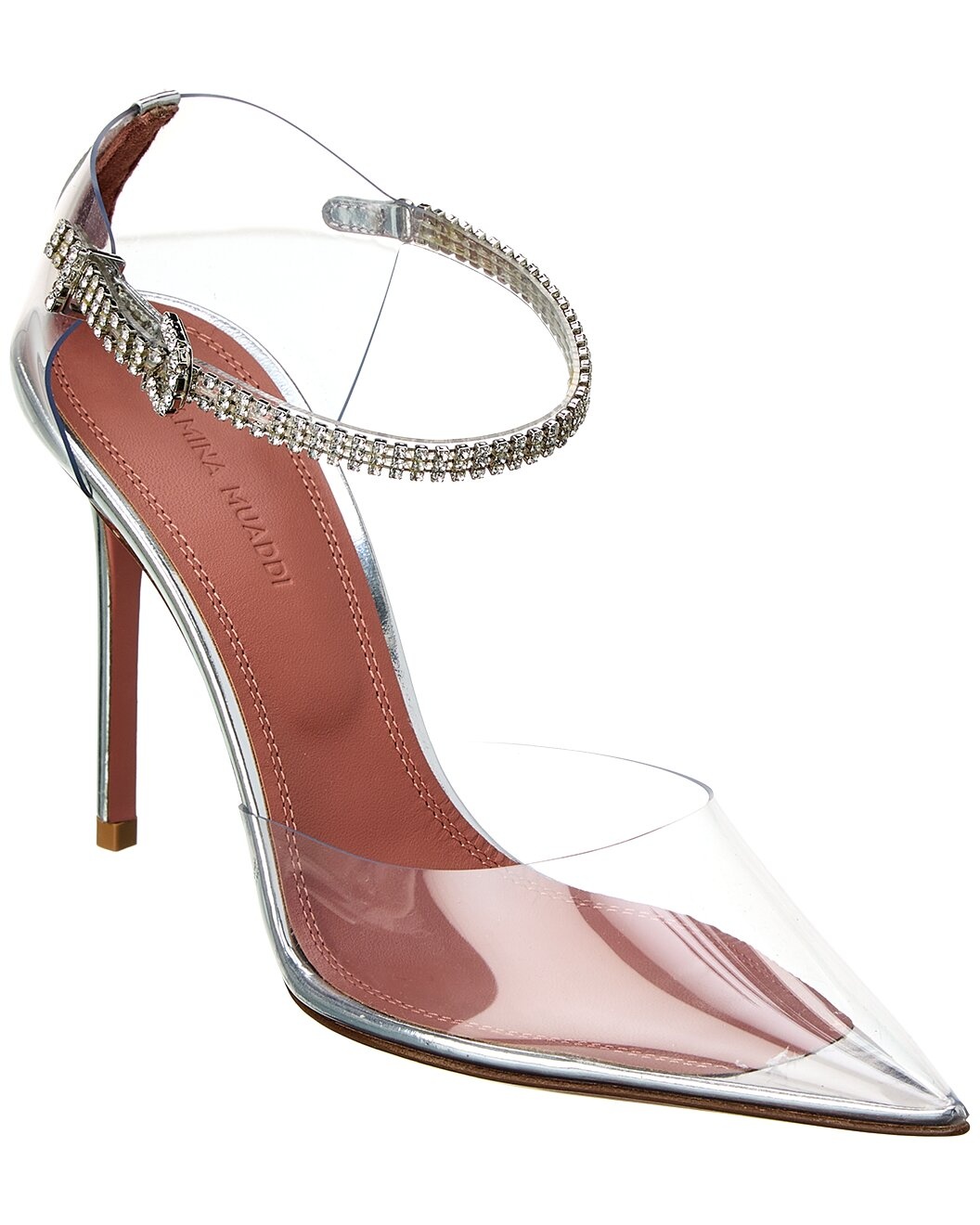 - About the brand: A fresh, feminine influencer favorite. - Please note: Size selections are European. For US conversions, please reference size chart. - Made in Italy - Ursina Vinyl & Leather Pump in silver leather and transparent vinyl and silver-tone hardware with crystal embellishments - Adjustable ankle strap with buckle closure - Lightly padded leather insole - Smooth leather sole - 4in heel - Please note: All measurements are approximate and were taken from a size 36; slight variations may occur. - Our products are 100% genuine. In some cases we purchase merchandise from trusted independent suppliers and not directly from the brand owner. In all cases we stand by the authenticity of every product sold on our site. - WARNING: - CA Residents - Prop 65