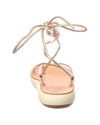 - Please note: Size selections are European. For US conversions, please reference size chart. - Color/material: platinum leather - Design details: strappy design - Self-tie ankle wrap closure - Smooth insole - Man-made sole - 1.5in platform - Please note: All measurements are approximate and were taken from a size 37; slight variations may occur. - Imported