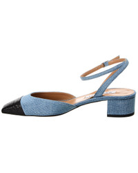 - About the brand: Sophisticated, sexy, & fun. - Please note: Size selections are European. For US conversions, please reference size chart. - Made in Italy - French Flirt 95 Denim & Leather Pump in pool denim canvas and black leather and gold-tone hardware with cap toe - Adjustable ankle strap with buckle closure - Lightly padded leather insole - Smooth leather sole - 1.37in heel - Please note: All measurements are approximate and were taken from a size 37; slight variations may occur. - Our products are 100% genuine. In some cases we purchase merchandise from trusted independent suppliers and not directly from the brand owner. In all cases we stand by the authenticity of every product sold on our site.