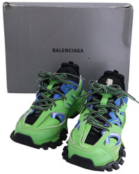 - About the brand: Recognized as one of the most influential names in fashion, Balenciaga has a reputation of uncompromising standards. Unmistakable, ultra-modern shapes and high-concept collections set Balenciaga apart, from runway to ready-to-wear. High-end collaborations and a renewed focus on fine-crafted handbags and footwear earn the brand a coveted spot as a viral, celebrity favorite. - This is an authentic, pre-loved piece. This item is in very good condition and shows light signs of wear. This item is lightly used but very well maintained, may show minor signs of wear, scratches , worn corners, minor interior wear. - For more information on condition, please see our condition guide at the bottom - Color/pattern: green/green plastic/polyurethane - Design details: Elevate your sneaker collection with the Balenciaga Track Sneakers in Green Polyurethane. The vibrant green polyurethane material gives these sneakers a fresh and contemporary look. The distinctive design, with its multiple layers and contrasting textures, adds a touch of urban sophistication. - The Pre-Loved Condition Guide - Our products are 100% genuine. In some cases we purchase merchandise from trusted independent suppliers and not directly from the brand owner. In all cases we stand by the authenticity of every product sold on our site. - WARNING: - CA Residents - Prop 65