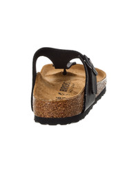 - About the brand: Iconic and sustainable designs that are always on-trend. - Gizeh Birko-Flor Sandal in noir Birko-Flor and black-tone hardware - Original Birkenstock suede-lined natural cork footbed that molds and shapes to your foot, featuring pronounced arch support, deep heel cup, and roomy toe box. - Man-made sole - Made in Germany