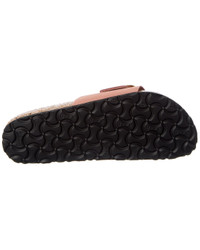 - About the brand: Iconic and sustainable designs that are always on-trend. - Please note: Size selections are European. For US conversions, please reference size chart. - Madrid Big Buckle Narrow Leather Sandal in old rose nubuck leather and gold-tone hardware - Buckle closure - Original Birkenstock® suede-lined natural cork footbed that molds and shapes to your foot, featuring pronounced arch support, deep heel cup, and roomy toe box. - Man-made sole - Made in Germany