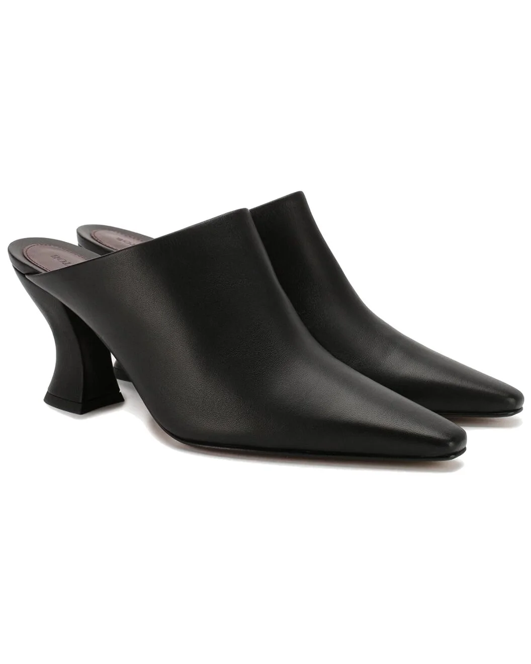 - About the brand: Unsurpassed craftsmanship - and that signature woven leather. - Please note: Size selections are European. For US conversions, please reference size chart. - Made in Italy - Almond Toe Leather Mule in black lambskin; The Bottega Veneta Almond Toe Leather Mules feature a distinctive shaped heel, known as the 'Almond' heel style. These mules combine elegance with modern design, offering a sophisticated silhouette that complements various outfits. Crafted from luxurious leather, they exemplify Bottega Veneta's attention to detail and commitment to quality craftsmanship. Ideal for both casual and formal settings, these mules are a versatile and stylish addition to any wardrobe. - Leather insole - Rubber sole - 2.9in heel - Our products are 100% genuine. In some cases we purchase merchandise from trusted independent suppliers and not directly from the brand owner. In all cases we stand by the authenticity of every product sold on our site.