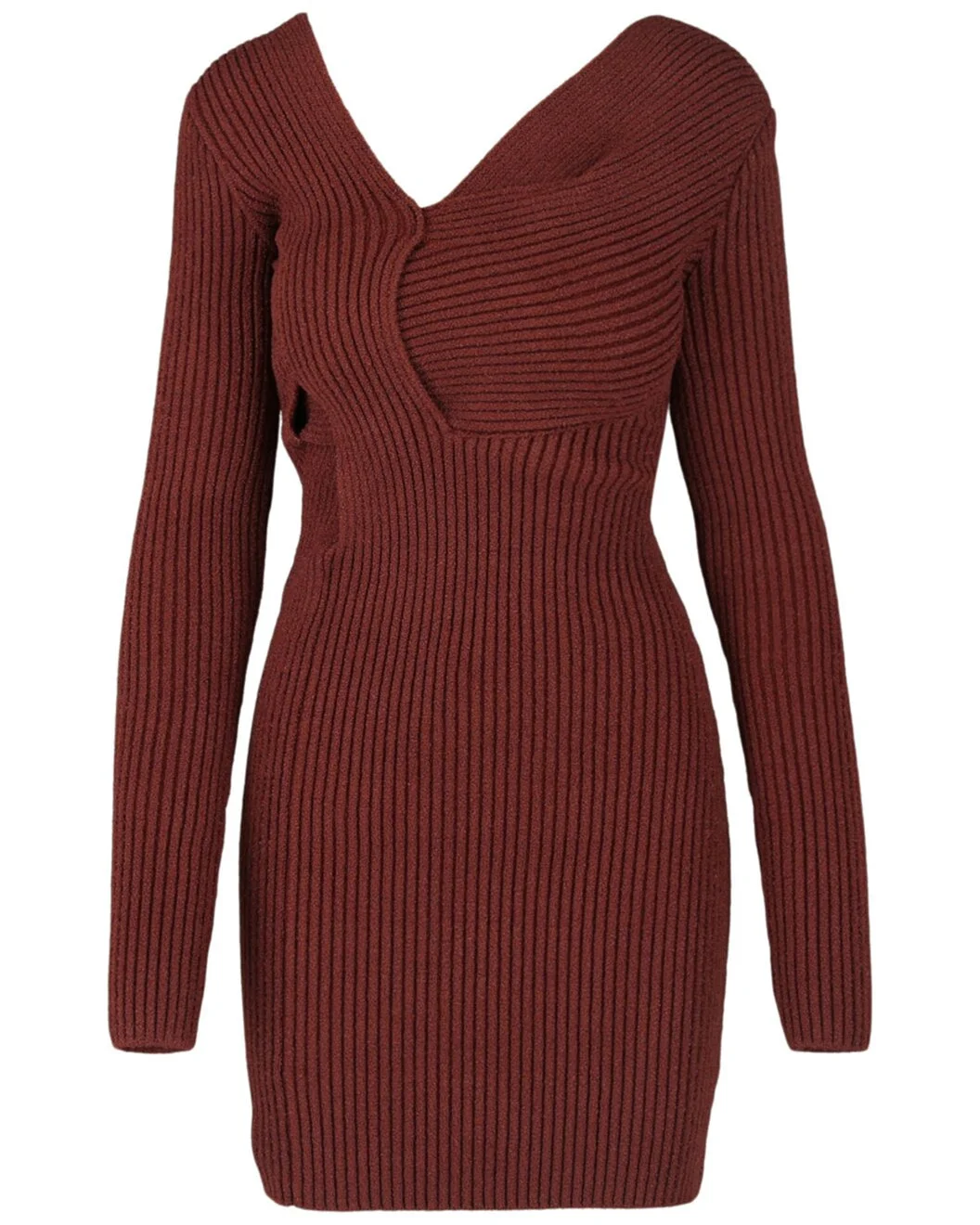 - About the brand: Unsurpassed craftsmanship - and that signature woven leather. - Color/pattern: rust - Design details: Asymmetrical neckline; Long sleeve; Front slip on closure; True to size; Mini; Knot-twist detail on upper chest - Slip-on styling - Main: 57% Silk, 43% Polyamide - Dry clean only - Made in Italy - Our products are 100% genuine. In some cases we purchase merchandise from trusted independent suppliers and not directly from the brand owner. In all cases we stand by the authenticity of every product sold on our site.