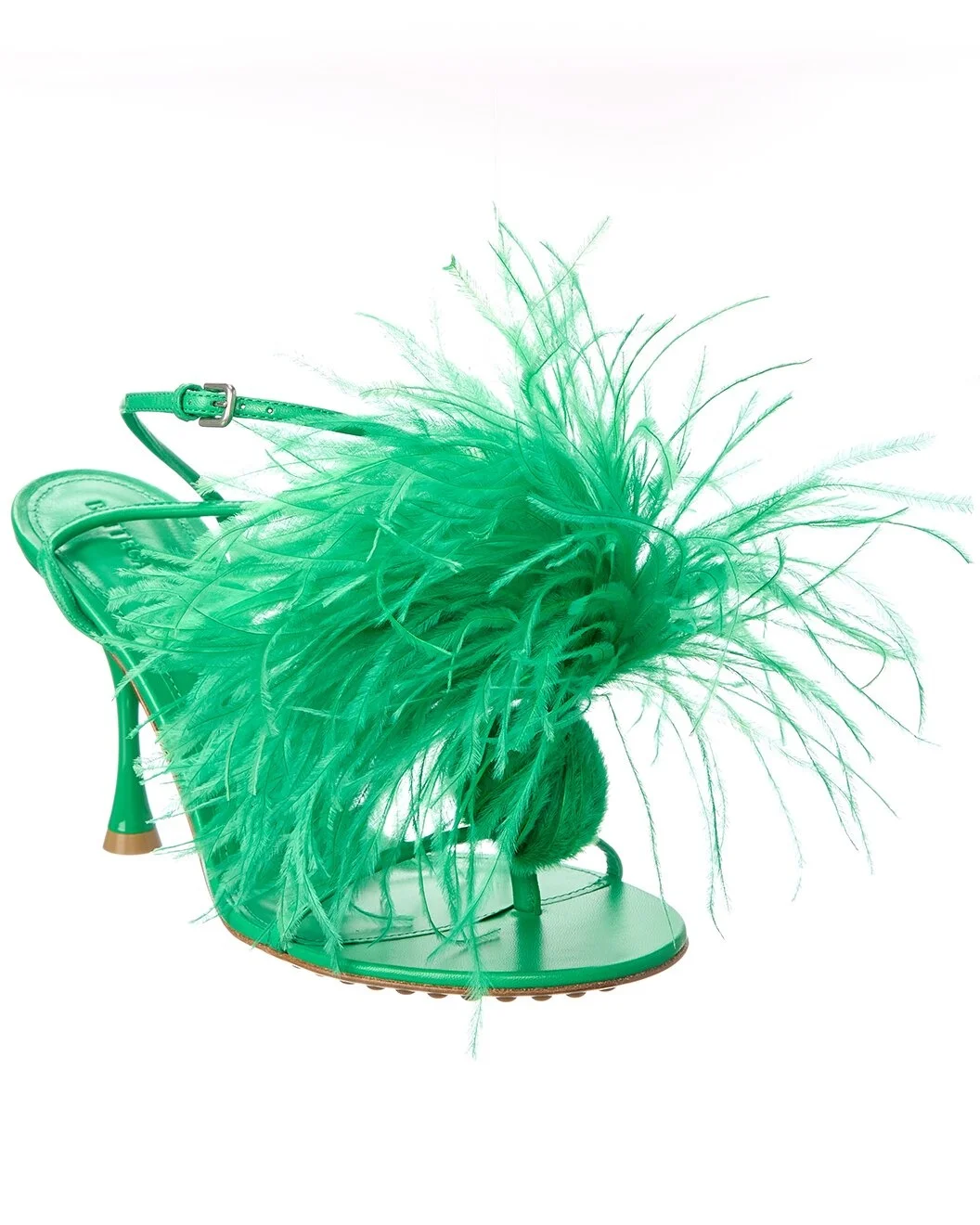 - About the brand: Unsurpassed craftsmanship - and that signature woven leather. - Please note: Size selections are European. For US conversions, please reference size chart. - Made in Italy - Dot Leather Sandal in grass leather and silver-tone hardware with feather detailing - Adjustable ankle strap with buckle closure - Lightly padded leather insole - Smooth leather sole with light traction - 4in heel - Please note: All measurements are approximate and were taken from a size 37; slight variations may occur. - Our products are 100% genuine. In some cases we purchase merchandise from trusted independent suppliers and not directly from the brand owner. In all cases we stand by the authenticity of every product sold on our site.