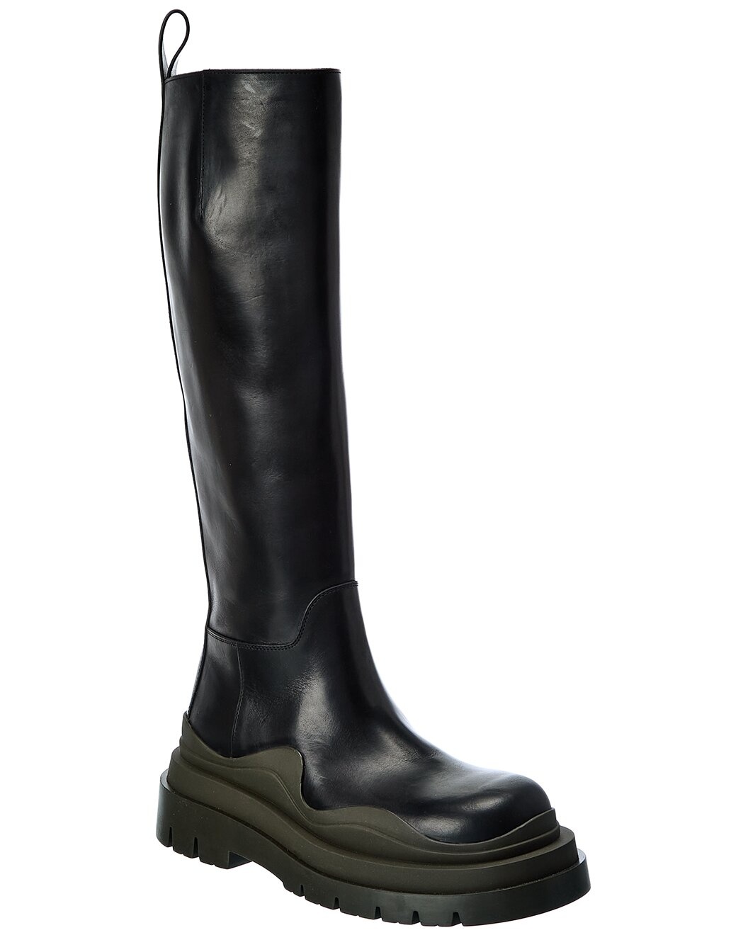 - Price as marked. - About the brand: Unsurpassed craftsmanship - and that signature woven leather. - Please note: Size selections are European. For US conversions, please reference size chart. - Made in Italy - The Tire High Leather Boot in black and camping leather with pull tabs - Elasticized slip-on style - Lightly padded leather insole - Rubber sole with traction - 2.5in heel - 1.3in platform - 18in shaft - 13in boot circumference - Please note: All measurements are approximate and were taken from a size 40; slight variations may occur. - Our products are 100% genuine. In some cases we purchase merchandise from trusted independent suppliers and not directly from the brand owner. In all cases we stand by the authenticity of every product sold on our site. - The Boot Size Guide