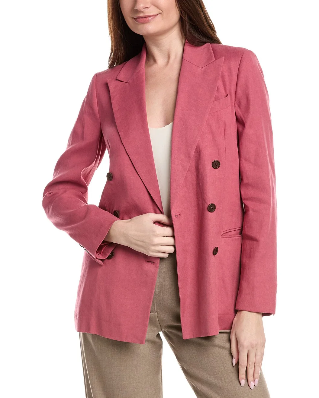 - About the brand: Hailed for its beautifully-crafted cashmere pieces, Brunello Cucinelli was named GQ's Designer of the Year in 2021. With attention to craftsmanship and sustainability, the company exemplifies Italian luxury. - Jacket in pink with peak lapel, left chest pocket, front flap pockets - Please note: Size selections are European. For US conversions, please reference the size chart. - Approximately 27.5in from shoulder to hem - Model is 5'10.5 and is wearing a size 40. Measurements may vary slightly by size. - Double-breasted button closure - Shell: 78% cotton, 16% polyamide, 6% elastane - Lining: 80% acetate, 20% silk - Dry clean only - Made in Italy - Our products are 100% genuine. In some cases we purchase merchandise from trusted independent suppliers and not directly from the brand owner. In all cases we stand by the authenticity of every product sold on our site.