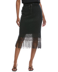 - About the brand: Hailed for its beautifully-crafted cashmere pieces, Brunello Cucinelli was named GQ's Designer of the Year in 2021. With attention to craftsmanship and sustainability, the company exemplifies Italian luxury. - Linen & Silk-Blend Macrame Hem Skirt in black with sequin accents and elasticized drawstring waist - Please note: Size selections are European. For US conversions, please reference the size chart. - Approximately 28in from waist to hem - Model is 5'9 and is wearing a size medium. Measurements may vary slightly by size. - 75% linen, 25% silk - Lining: 74% acetate, 26% silk - Lining 2 : 65% acetate, 35% polyester - Dry clean only - Made in Italy - Our products are 100% genuine. In some cases we purchase merchandise from trusted independent suppliers and not directly from the brand owner. In all cases we stand by the authenticity of every product sold on our site.