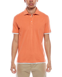 - About the brand: Hailed for its beautifully-crafted cashmere pieces, Brunello Cucinelli was named GQ's Designer of the Year in 2021. With attention to craftsmanship and sustainability, the company exemplifies Italian luxury. - Pique Polo Shirt in orange with layered trim - Please note: Size selections are European. For US conversions, please reference the size chart. - Approximately 29in from shoulder to hem - Model is 6'1 and is wearing a size small. Measurements may vary slightly by size. - Button placket - 100% cotton - Machine wash - Made in Italy - Our products are 100% genuine. In some cases we purchase merchandise from trusted independent suppliers and not directly from the brand owner. In all cases we stand by the authenticity of every product sold on our site.