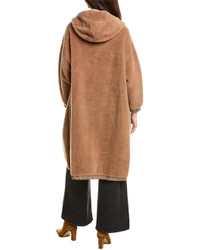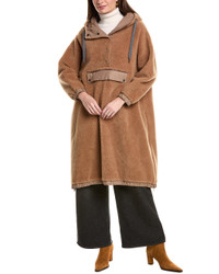 Plush virgin wool and cashmere hooded outerwear jacket with shiny trim