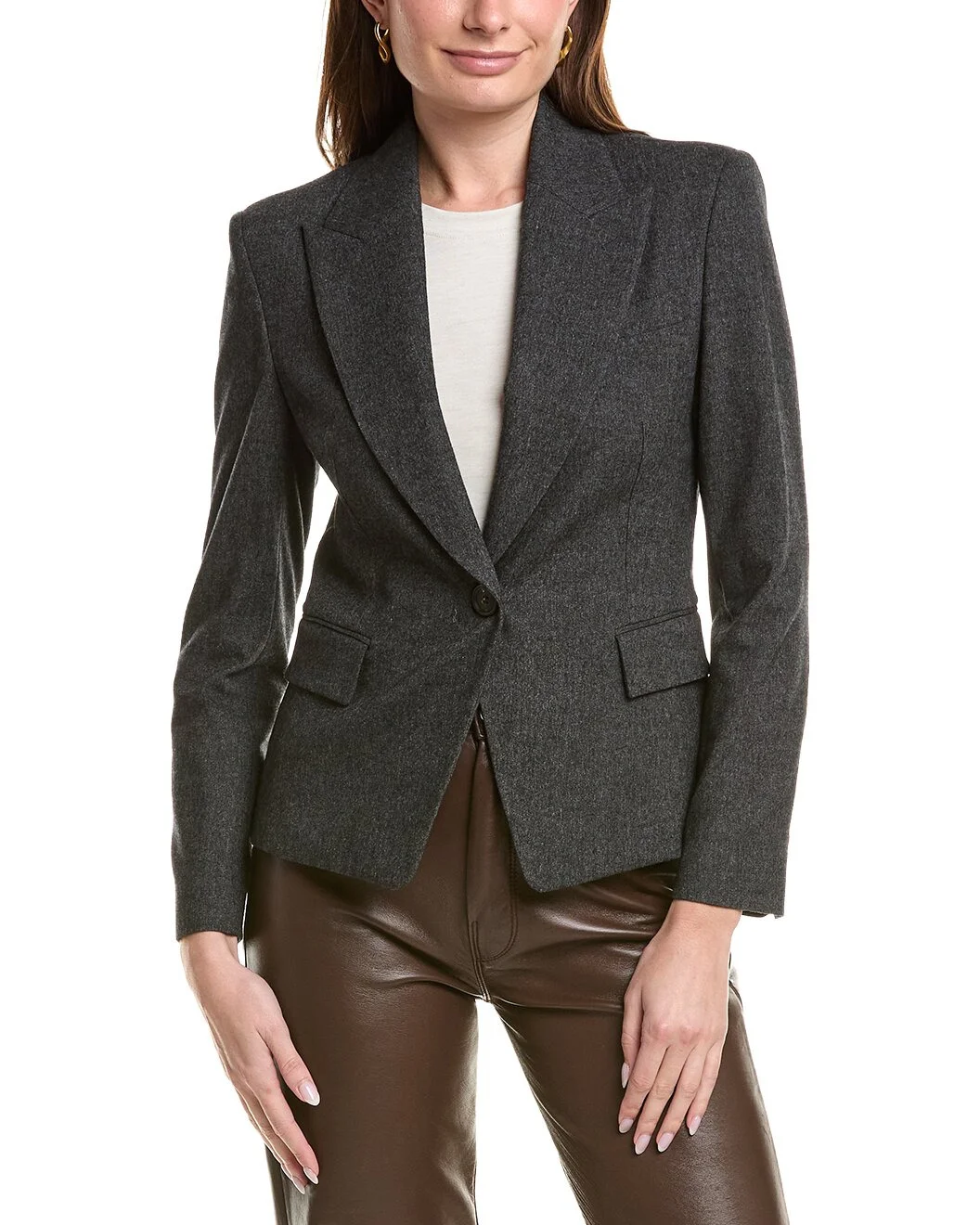 - About the brand: Hailed for its beautifully-crafted cashmere pieces, Brunello Cucinelli was named GQ's Designer of the Year in 2021. With attention to craftsmanship and sustainability, the company exemplifies Italian luxury. - Wool & Silk-Blend Blazer in grey with peak lapel, chest pocket, and front flap pockets - Please note: Size selections are European. For US conversions, please reference the size chart. - Approximately 23in from shoulder to hem - Model is 5'10.5 and is wearing a size 40. Measurements may vary slightly by size. - Single-button closure - 60% virgin wool, 18% viscose, 18% polyester, 2% polyamide, 2% elastane - Lining: 74% acetate, 26% silk - Dry clean only - Made in Italy - Our products are 100% genuine. In some cases we purchase merchandise from trusted independent suppliers and not directly from the brand owner. In all cases we stand by the authenticity of every product sold on our site.
