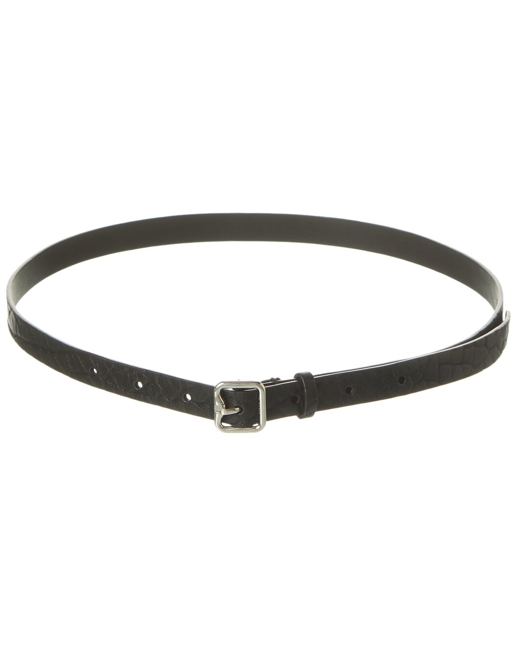 - About the brand: Iconic patterns, materials and silhouettes have made Burberry a coveted luxury staple since 1856. From waterproof, patented gabardine fabric to the unmistakable vintage check and the more modern monogram pattern, Burberry boasts undeniably British influence with timeless appeal. - Color/material: black grainy leather - Design details: silver-tone hardware, pin buckle closure - Measures 1.25in wide - Made in Italy - Please note: All measurements were taken by hand and are approximate; slight variations may occur. - Our products are 100% genuine. In some cases we purchase merchandise from trusted independent suppliers and not directly from the brand owner. In all cases we stand by the authenticity of every product sold on our site.