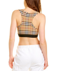 - About the brand: Iconic patterns, materials and silhouettes have made Burberry a coveted luxury staple since 1856. From waterproof, patented gabardine fabric to the unmistakable vintage check and the more modern monogram pattern, Burberry boasts undeniably British influence with timeless appeal. - Price as marked - Bra Top in brown with scoop neck, racerback and logo printed hem - Approximately 13in from shoulder to hem - Model is 5'9.5 and is wearing a size small. Measurements may vary slightly by size. - 88% polyamide, 12% elastane - Machine wash - Our products are 100% genuine. In some cases we purchase merchandise from trusted independent suppliers and not directly from the brand owner. In all cases we stand by the authenticity of every product sold on our site.