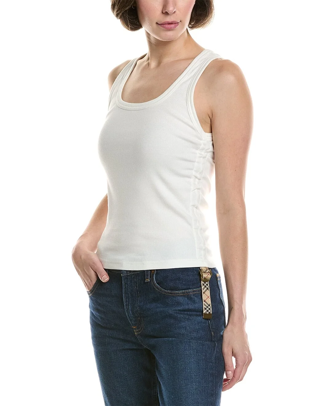 - About the brand: Iconic patterns, materials and silhouettes have made Burberry a coveted luxury staple since 1856. From waterproof, patented gabardine fabric to the unmistakable vintage check and the more modern monogram pattern, Burberry boasts undeniably British influence with timeless appeal. - Check Cotton Tank Top in chalk with ribbed trim, and scoop neck - Approximately 21in from shoulder to hem - Model is 5'10 and is wearing a size small. Measurements may vary slightly by size. - Slip-on styling - 95% cotton, 5% elastane - Machine wash - Our products are 100% genuine. In some cases we purchase merchandise from trusted independent suppliers and not directly from the brand owner. In all cases we stand by the authenticity of every product sold on our site.