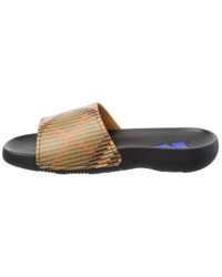 - About the Product: - Luxury Slide Sandals with Iconic Burberry Check Pattern - Color/Pattern: Sand Check - Smooth Insole - Man-Made Sole - Slip-On Style - Iconic Check Pattern Upper - Polyurethane - Made in Italy - Size & Fit: - Please note: Size selections are European. For US conversions, please reference size chart. - About the Brand: - Iconic patterns, materials and silhouettes have made Burberry a coveted luxury staple since 1856. From waterproof, patented gabardine fabric to the unmistakable vintage check and the more modern monogram pattern, Burberry boasts undeniably British influence with timeless appeal. - Please Note: - Our products are 100% genuine. In some cases we purchase merchandise from trusted independent suppliers and not directly from the brand owner. In all cases we stand by the authenticity of every product sold on our site. - WARNING: CA Residents - Prop 65
