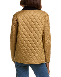 - About the brand: Iconic patterns, materials and silhouettes have made Burberry a coveted luxury staple since 1856. From waterproof, patented gabardine fabric to the unmistakable vintage check and the more modern monogram pattern, Burberry boasts undeniably British influence with timeless appeal. - Diamond Quilted Jacket in camel brown with corduroy collar and front patch pockets - Please note: Size selections are UK. For US conversions, please reference the size chart. - Approximately 26in from shoulder to hem - Model is 5'10 and is wearing a size small. Measurements may vary slightly by size. - Snap closure - Shell: 100% polyester - Lining: 100% cotton - Fill: 100% polyester - Dry clean only - Our products are 100% genuine. In some cases we purchase merchandise from trusted independent suppliers and not directly from the brand owner. In all cases we stand by the authenticity of every product sold on our site.