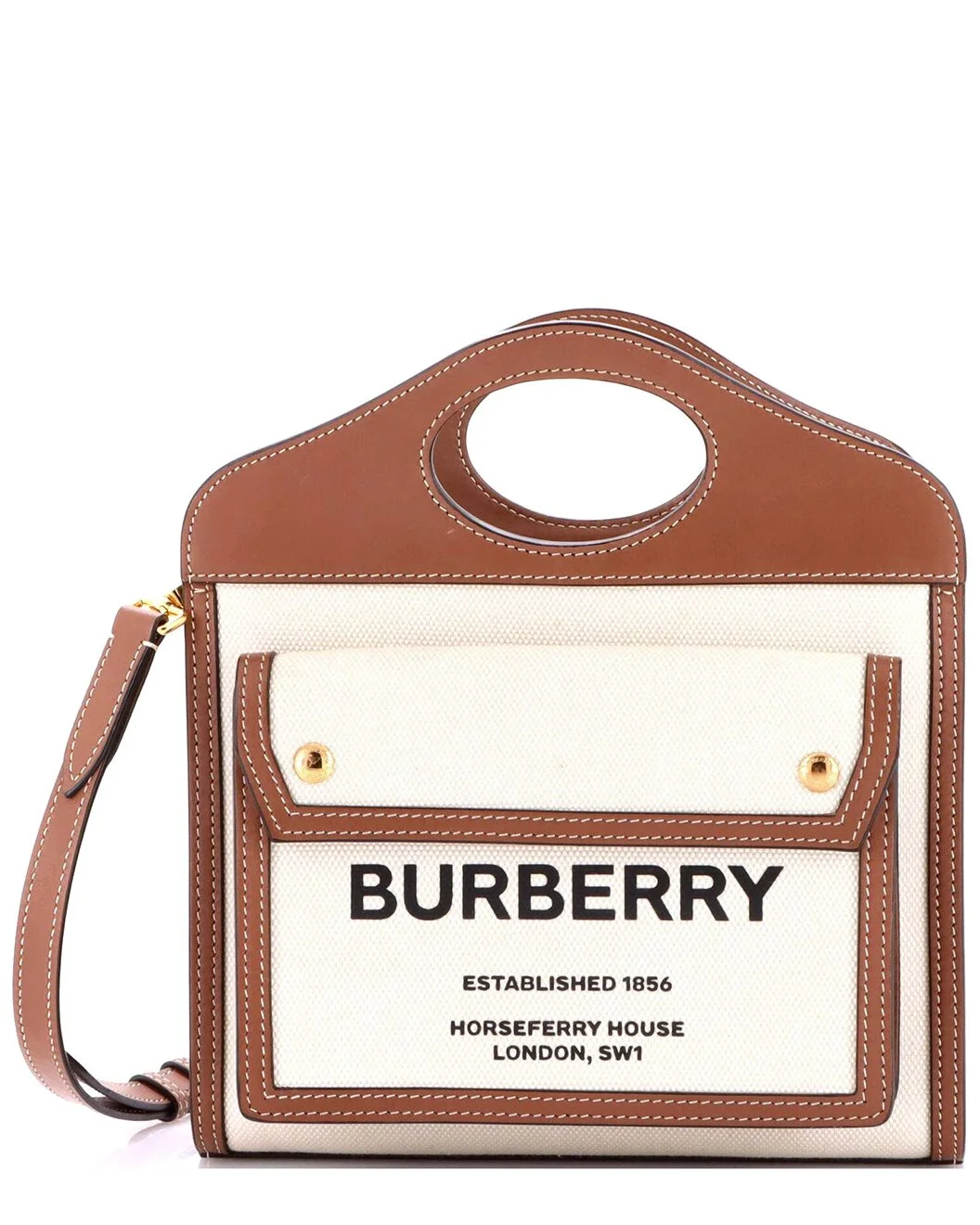- About the brand: Iconic patterns, materials and silhouettes have made Burberry a coveted luxury staple since 1856. From waterproof, patented gabardine fabric to the unmistakable vintage check and the more modern monogram pattern, Burberry boasts undeniably British influence with timeless appeal. - This is an authentic, pre-loved piece. This item is in excellent condition, but may show slight signs of wear. This item shows unused or used once, but as good as new. no sign of wear. - For more information on condition, please see our condition guide at the bottom - Logo Pocket Tote Canvas with Leather Mini in Beige Canvas - Measurements: 10in long x 2.99in wide x 8.46in high; 2in handle - Please note: All measurements were taken by hand and are approximate; slight variations may occur. - The Pre-Loved Condition Guide - Our products are 100% genuine. In some cases we purchase merchandise from trusted independent suppliers and not directly from the brand owner. In all cases we stand by the authenticity of every product sold on our site.
