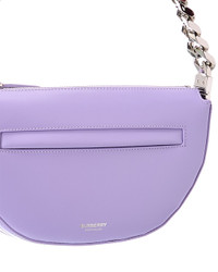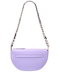 - About the brand: Iconic patterns, materials and silhouettes have made Burberry a coveted luxury staple since 1856. From waterproof, patented gabardine fabric to the unmistakable vintage check and the more modern monogram pattern, Burberry boasts undeniably British influence with timeless appeal. - Made in Italy - Olympia Mini Leather Shoulder Bag in soft violet leather and silver-tone hardware with zippered pocket and chain strap - Interior design details: leather lining - Measures 9in wide x 5.5in high x 1.5in deep - Shoulder strap drops 12in - Zipper closure - Please note: All measurements were taken by hand and are approximate; slight variations may occur. - Our products are 100% genuine. In some cases we purchase merchandise from trusted independent suppliers and not directly from the brand owner. In all cases we stand by the authenticity of every product sold on our site.