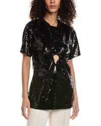 - About the brand: Iconic patterns, materials and silhouettes have made Burberry a coveted luxury staple since 1856. From waterproof, patented gabardine fabric to the unmistakable vintage check and the more modern monogram pattern, Burberry boasts undeniably British influence with timeless appeal. - Sequin T-Shirt in black with sequin design and gathered cutout waist with ring accent - Approximately 30in from shoulder to hem - Model is 5'12 and is wearing a size small. Measurements may vary slightly by size. - 100% cotton - Trim: 98% cotton, 2% elastane - Machine wash - Our products are 100% genuine. In some cases we purchase merchandise from trusted independent suppliers and not directly from the brand owner. In all cases we stand by the authenticity of every product sold on our site.