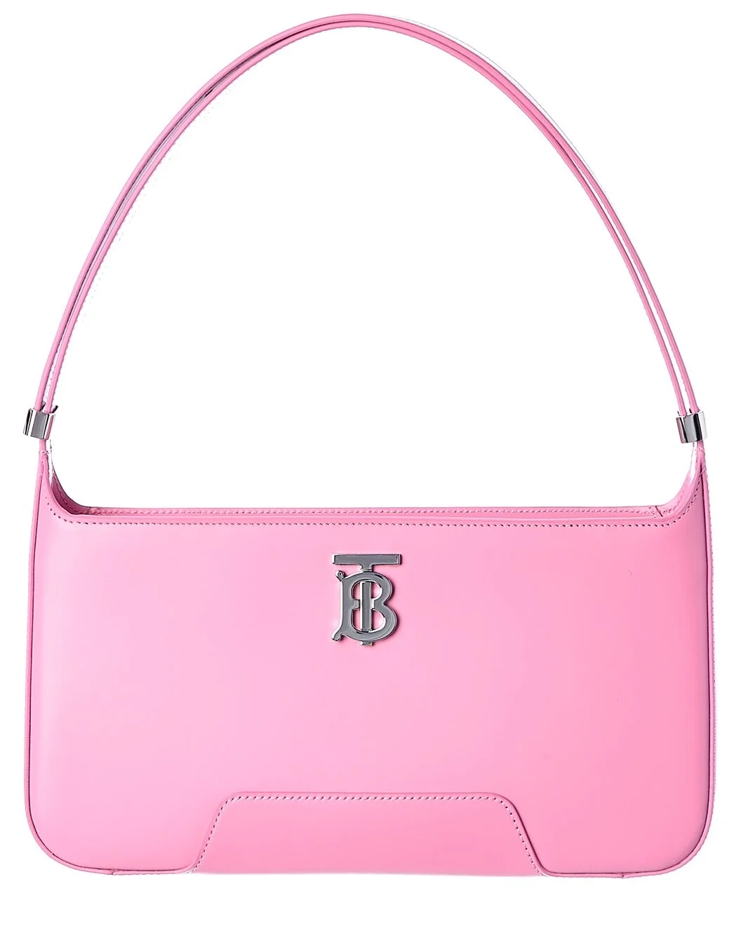 - About the brand: Iconic patterns, materials and silhouettes have made Burberry a coveted luxury staple since 1856. From waterproof, patented gabardine fabric to the unmistakable vintage check and the more modern monogram pattern, Burberry boasts undeniably British influence with timeless appeal. - Made in Italy - TB Leather Shoulder Bag in primrose pink leather and silver-tone hardware with monogram accent - Interior design details: leather lining, interior pockets - Measures 11in wide x 5.5in high x 2in deep - Top handle drops 8in - Zipper closure - Please note: All measurements were taken by hand and are approximate; slight variations may occur. - Our products are 100% genuine. In some cases we purchase merchandise from trusted independent suppliers and not directly from the brand owner. In all cases we stand by the authenticity of every product sold on our site.