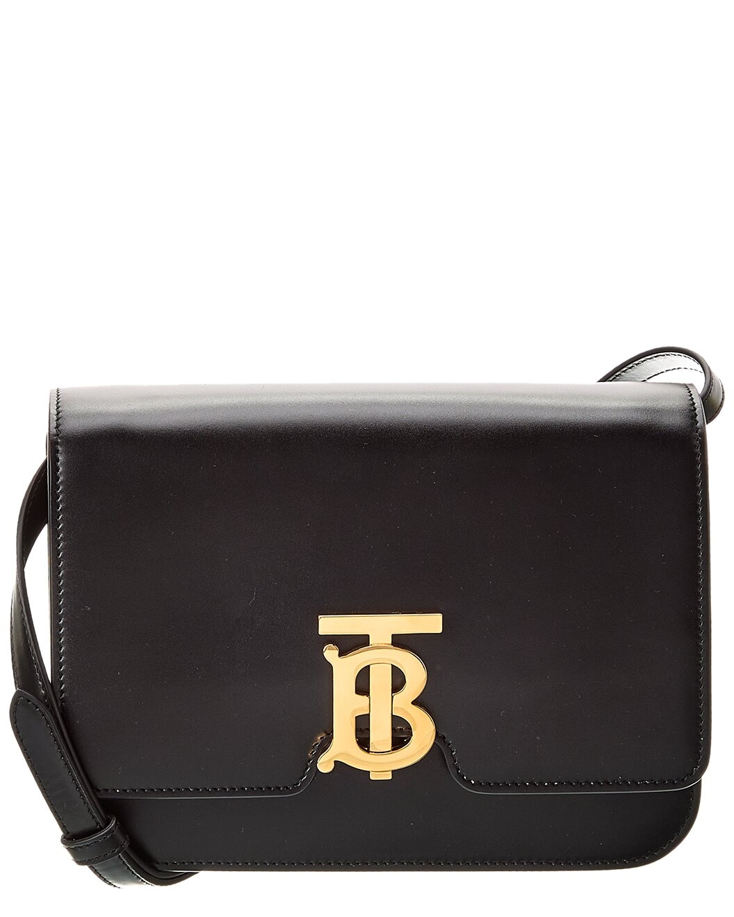 - About the brand: Iconic patterns, materials and silhouettes have made Burberry a coveted luxury staple since 1856. From waterproof, patented gabardine fabric to the unmistakable vintage check and the more modern monogram pattern, Burberry boasts undeniably British influence with timeless appeal. - This is an authentic, pre-owned piece. This item may show signs of wear. - For more information on condition, please see our condition guide at the bottom - Made in Italy - TB Small Leather Shoulder Bag in black leather with gold-tone hardware and monogram accent - Interior design details: leather lining, interior pockets - Measures 8.3in wide x 6in high x 3.5in deep - Shoulder strap drops 21in - Fold-over flap with turnlock closure - Please note: All measurements were taken by hand and are approximate; slight variations may occur. - Our products are 100% genuine. In some cases we purchase merchandise from trusted independent suppliers and not directly from the brand owner. In all cases we stand by the authenticity of every product sold on our site. - The Vintage Condition Guide