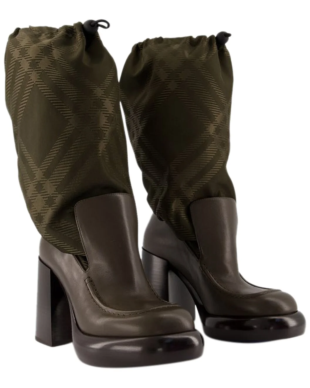 Leather and Nylon Blend Wedge Boots