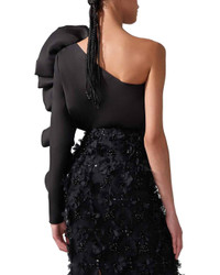 Carolina Herrera One Shoulder Flower Sleeve Silk Top