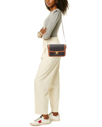 - About the brand: Classic, coveted Parisian chic. - Made in Italy - Classic Triomphe Canvas & Leather Shoulder Bag in tan triomphe canvas and leather and gold-tone hardware with logo accent and chain strap - Interior design details: leather interior, divided interior, zippered pocket - Measures 9in wide x 6in high x 2in deep - Adjustable shoulder strap drops 20in - Fold-over flap with magnetic closure - Please note: All measurements were taken by hand and are approximate; slight variations may occur. - Our products are 100% genuine. In some cases we purchase merchandise from trusted independent suppliers and not directly from the brand owner. In all cases we stand by the authenticity of every product sold on our site.