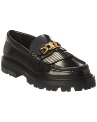 - About the brand: Classic, coveted Parisian chic. - Please note: Size selections are European. For US conversions, please reference size chart. - Made in Italy - Triomphe Margaret Leather Loafer in black leather and gold-tone hardware with fringe trim - Lightly padded leather insole - Rubber lug sole - 1.3in heel - 0.9in platform - Please note: All measurements are approximate and were taken from a size 37.5; slight variations may occur. - Our products are 100% genuine. In some cases we purchase merchandise from trusted independent suppliers and not directly from the brand owner. In all cases we stand by the authenticity of every product sold on our site.
