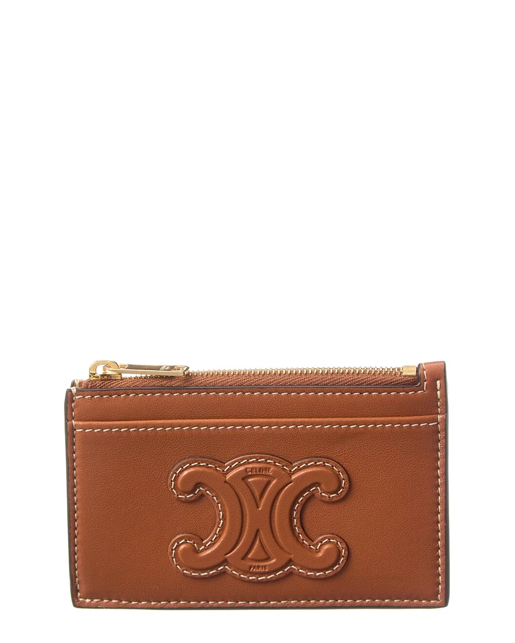 - About the brand: Classic, coveted Parisian chic. - Made in Italy - Zipped Leather Card Holder in tan leather and gold-tone hardware with card slots - Interior design details: leather interior - Measures 4in wide x 3in high x 1in deep - Zipper closure - Please note: All measurements were taken by hand and are approximate; slight variations may occur. - Our products are 100% genuine. In some cases we purchase merchandise from trusted independent suppliers and not directly from the brand owner. In all cases we stand by the authenticity of every product sold on our site.