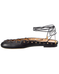 - About the brand: Romantic, cool, and glamorous. - Please note: Size selections are European. For US conversions, please reference size chart. - Made in Italy - Ghillies Leather Ballerina Flat in black leather and gold-tone hardware - Self-tie ankle wrap closure - Lightly padded leather insole - Smooth leather sole - Our products are 100% genuine. In some cases we purchase merchandise from trusted independent suppliers and not directly from the brand owner. In all cases we stand by the authenticity of every product sold on our site.
