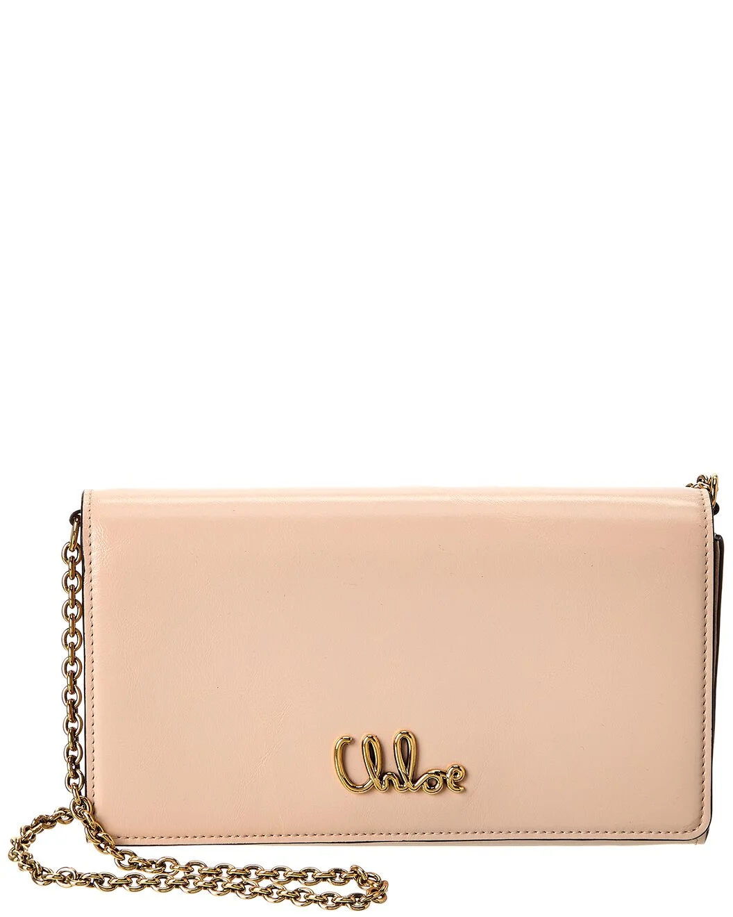 CHLOÉ ICONIC FLAP WALLET ON CHAIN IN SHINY LEATHER